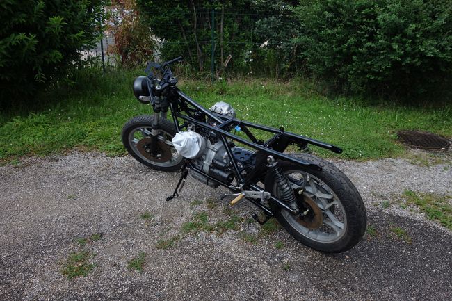 Et mise en place des 2 roues, qui seront traitées décappée et repeinte plus tard . il reste pas mal de boulot en dehors